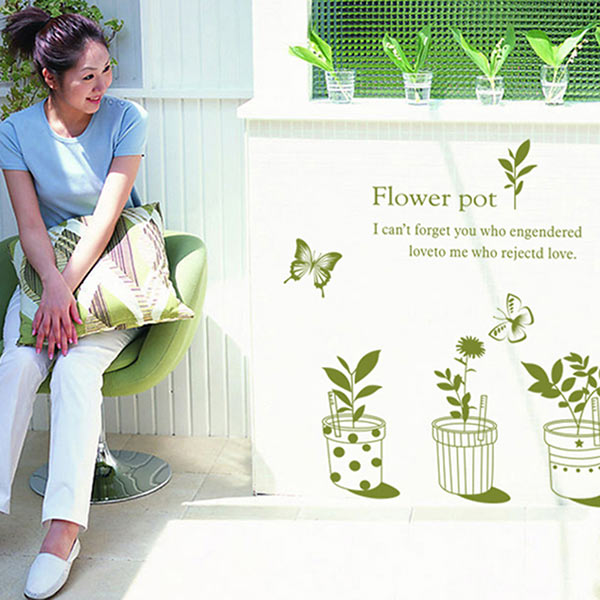 お手軽にお部屋のイメージを変えられる、はがせるタイプのウォールステッカー。<グリーン・フラワー・ポット>
