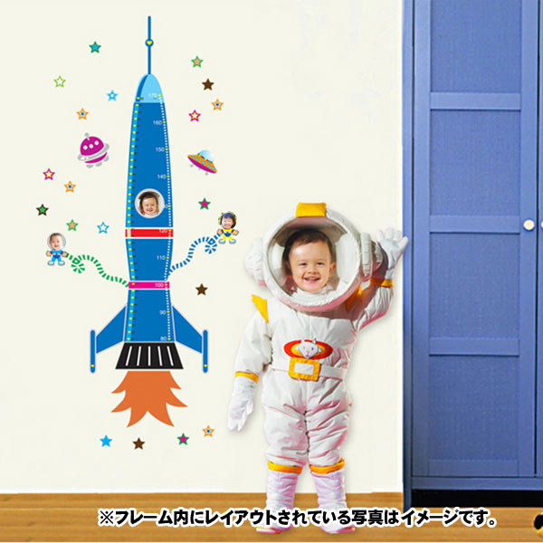 ロケットの窓や宇宙飛行士の顔部分に、お手持ちのお写真をレイアウトすることができます。