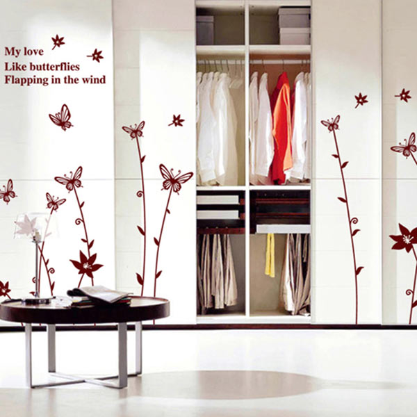 お手軽にお部屋のイメージを変えられる、はがせるタイプのウォールステッカー。<ちょうちょの花>