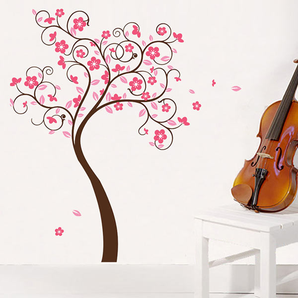 貼ってはがせる簡単ウォールステッカー ピンク・ツリー