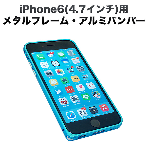 【大処分セール】iphone6(4.7インチ)用メタルフレーム・アルミバンパー フックタイプ【メール便可】 スカイブルー