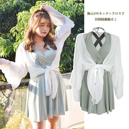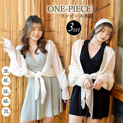 水着 韓国風 ぽっちゃり 大きいサイズ水着 レディース 3点セット ワンピース水着 3L 4L 5L 6L 7Lトップス付き