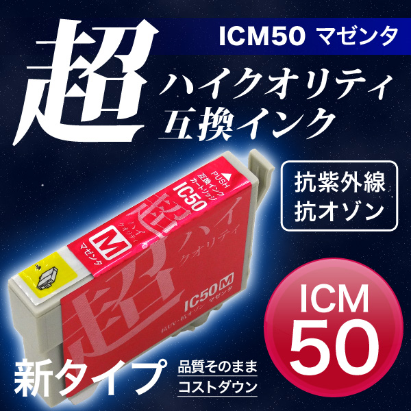 【高品質】ICM50 エプソン用 IC50 互換インクカートリッジ 超ハイクオリティ マゼンタ【メール便可】