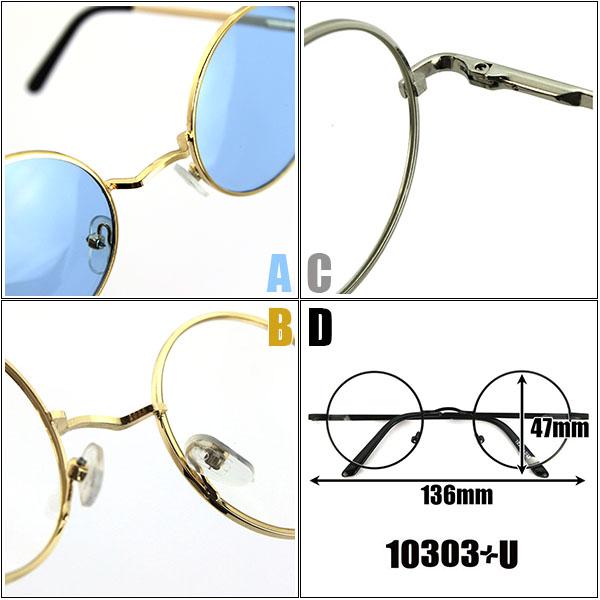 丸型 伊達メガネ サングラス AD43 ライトカラー 丸い メタル メンズ レディース 共用 UVカット