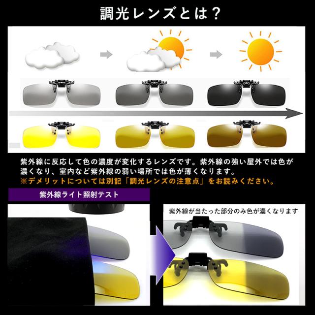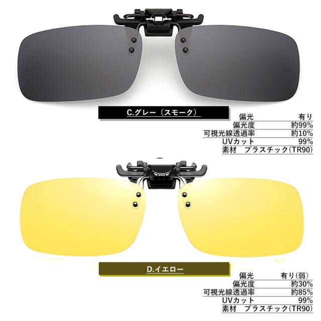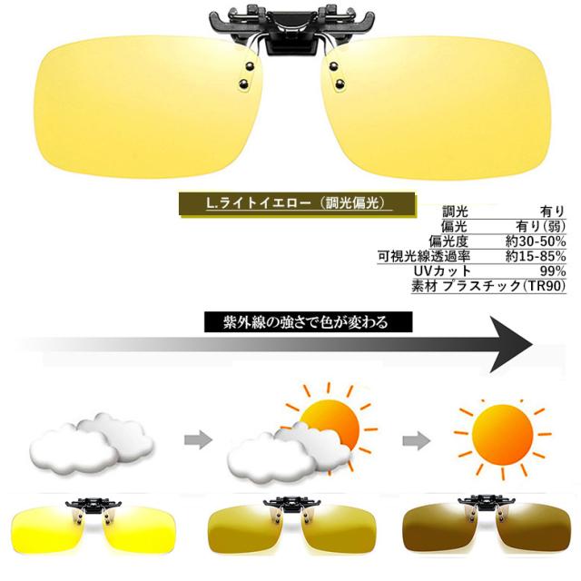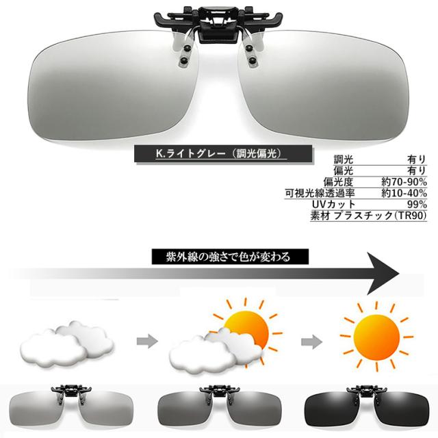 偏光 クリップオン サングラス 跳ね上げ式 釣り フィッシング ドライブ ゴルフ などに最適 調光偏光(Kライトグレー,Lライトイエロー)