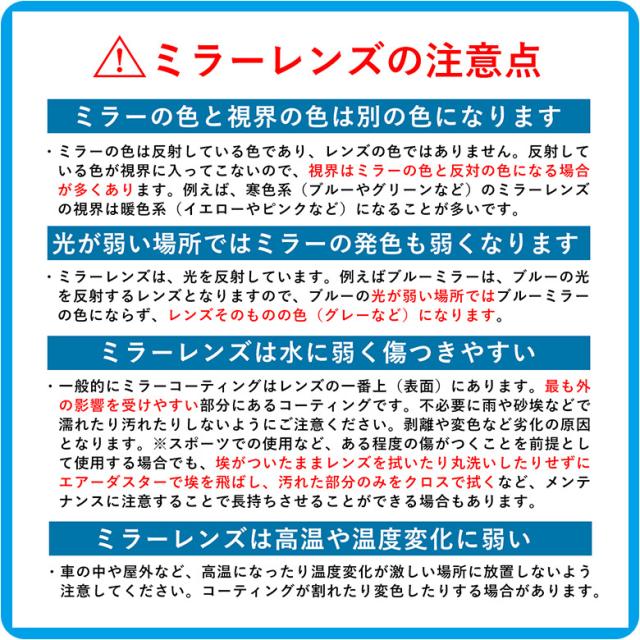 ブルーミラー、ゴールドミラー、シルバーミラー、ライトグレー(調光偏光)、ライトイエロー(調光偏光)