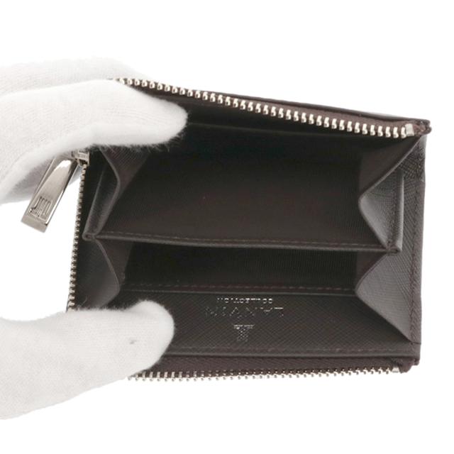 表素材には滑らかな手触りのスムースレザーを使用し、内側には繊細な型押しのエンボスレザーを合わせたシリーズです。飽きのこないシンプルなデザインに仕上げています。カードも収納可能な使い勝手の良いL字ファスナー式の小銭入れです。ファスナーの引手のロゴマークが上品さを演出しています。
