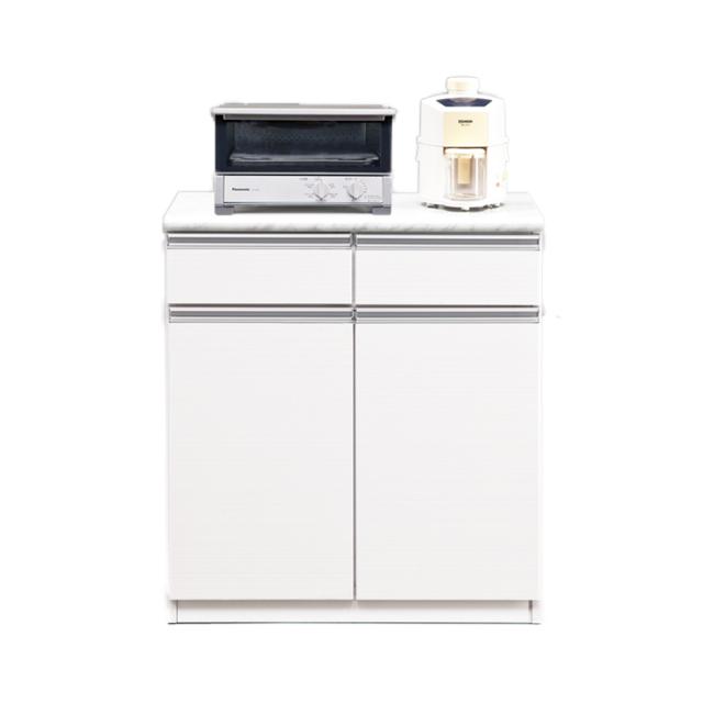 素材:MDF・強化紙商品サイズ:W80×D48×H89重量:40生産国:日本製備考:完成品特徴:カウンタートップは高級感のある大理石柄特徴2:キャスター付きで簡単に移動できます