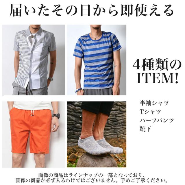 トレンドコーデが即完成!【半袖シャツ】【Tシャツ】【ハーフパンツ】【靴下】の計4点福袋!