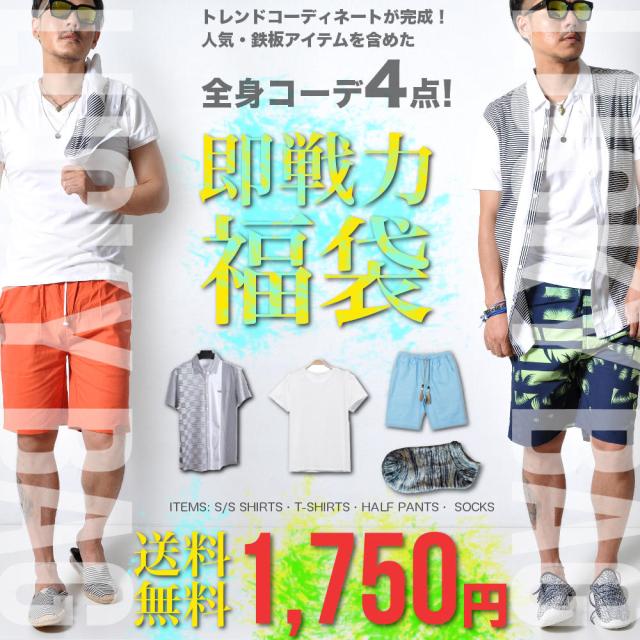 完売御免 福袋 4アイテム シャツ Tシャツ ショーツ メンズ トップス ボトムス 靴下 #F18s1 M便