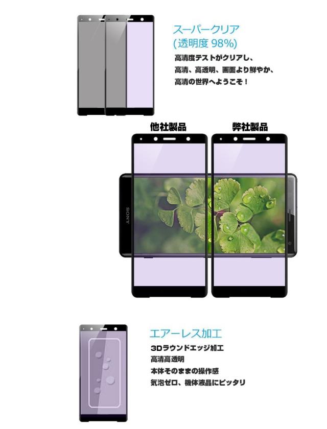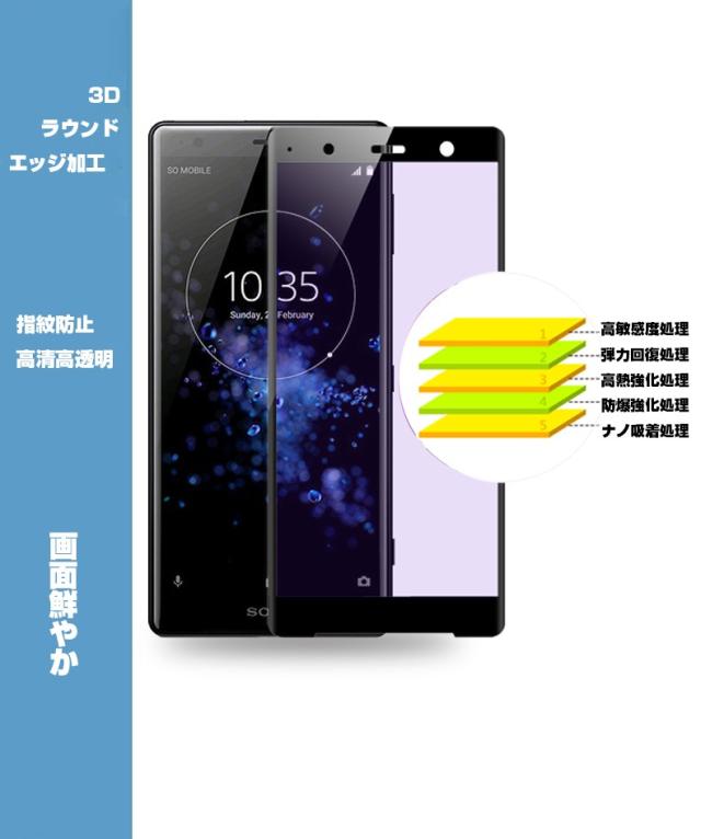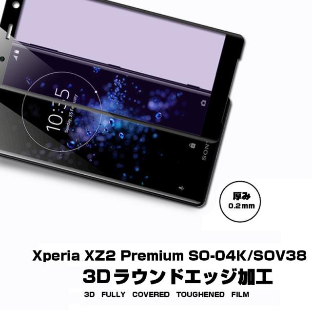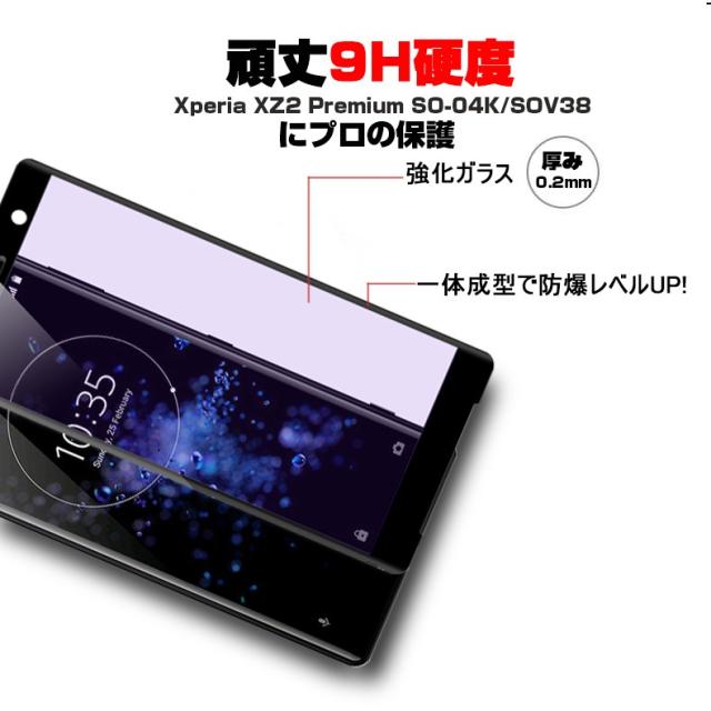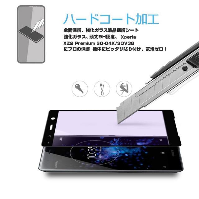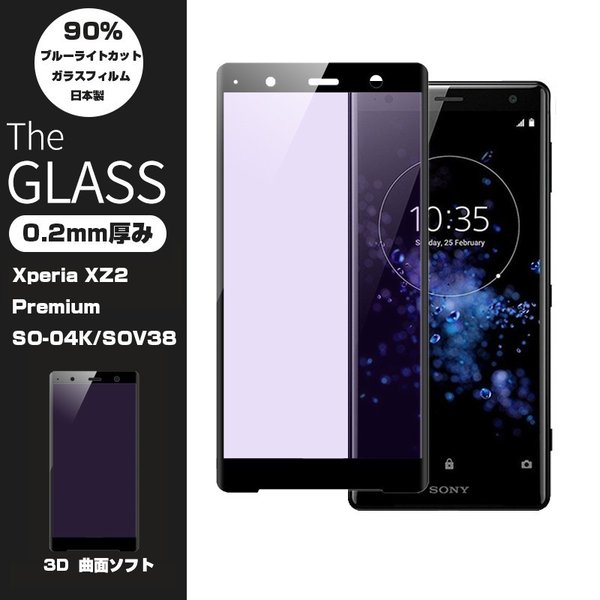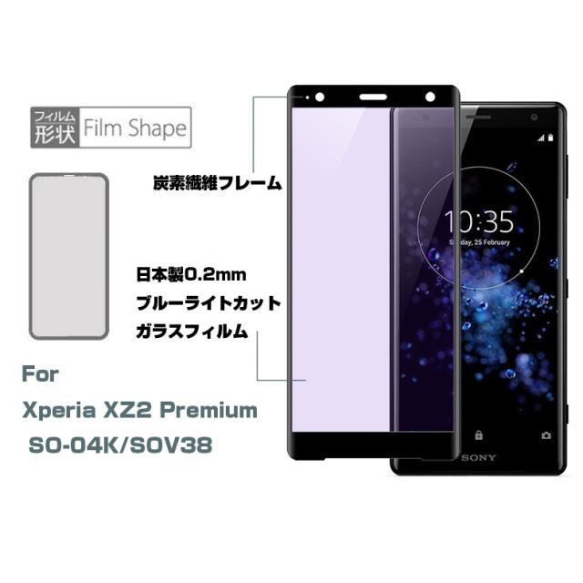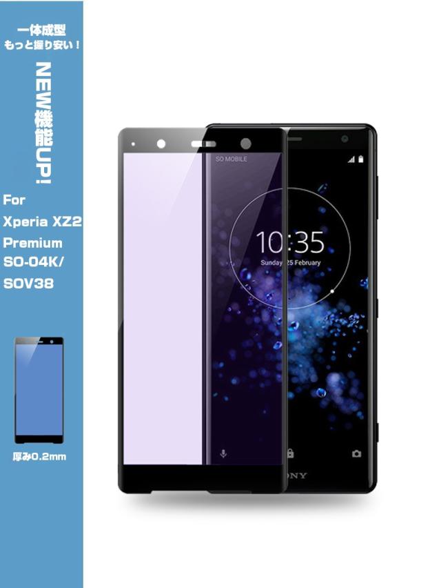 【2枚セット】Xperia XZ2 Premium ブルーライトカット 3D 全面保護 SO-04K ガラスフィルム SOV38 強化ガラス保護フィルム ソフトフレーム