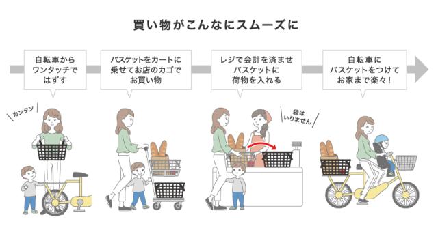 ■ワンタッチで簡単脱着式リアバスケットに変身する自転車の後ろ用かご。 |