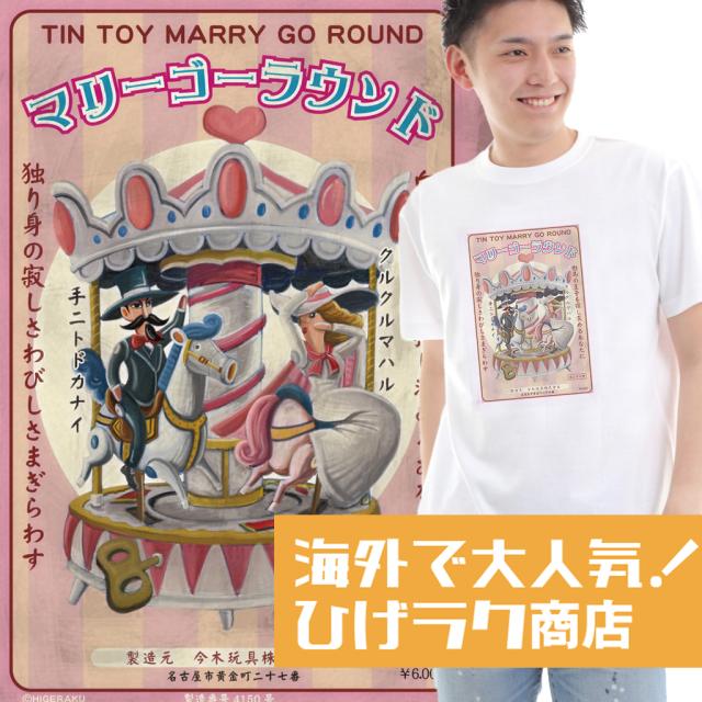 ひげラク商店Tシャツ【マリーゴーラウンド】名言 漢字 文字 メッセージtシャツ |おもしろtシャツ 文字tシャツ 面白いtシャツ 面白 大きいサイズ 文字入り プレゼント 外国人 お土産 メンズ 白 黒 面白 ジョーク グッズ バックプリント おもし