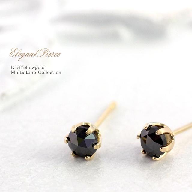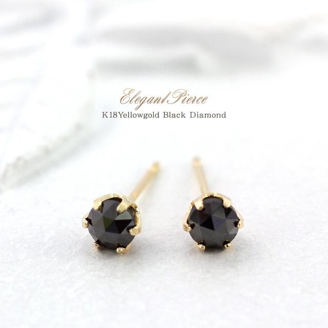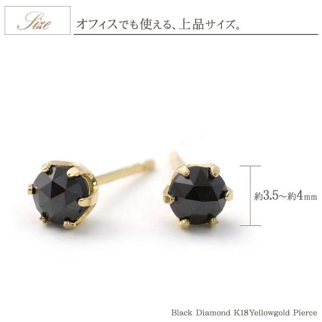 ブラックダイヤモンド ピアス 18金 ゴールド 一粒 (両耳) 18k ジュエリー プレゼント レディース アクセサリー ブラック ダイヤモンド 黒 ブラックダイヤモンドピアス 一粒ピアス クリスマス プレゼント 誕生日 贈り物 女性 彼女 妻 嫁 娘