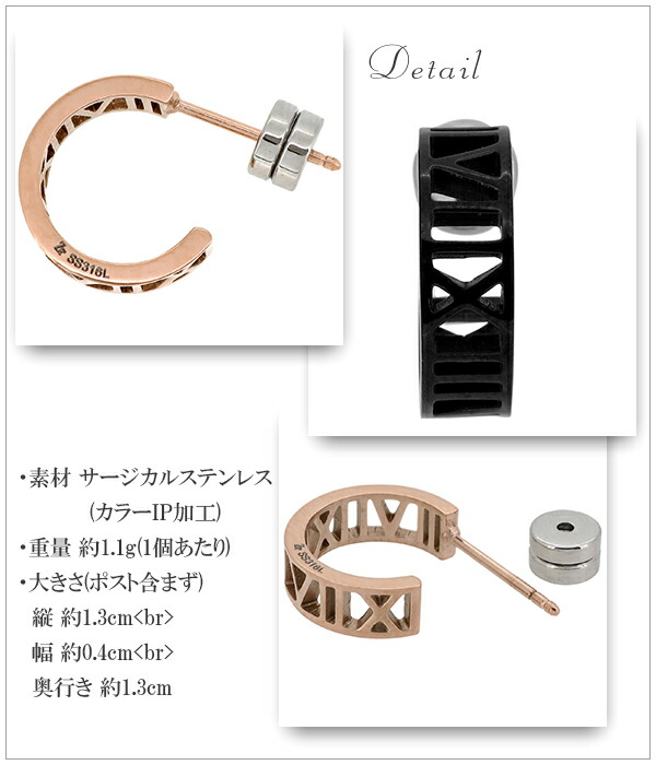 ローマ数字 ハーフフープ カラー サージカルステンレス スタッドピアス 1P 片耳用