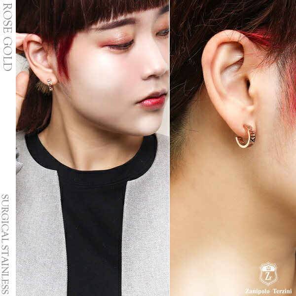 IP ブラック ローズゴールド フープ SS316L 金属アレルギー メンズピアス プレゼント 男性 彼氏 人気 おしゃれ かっこいい