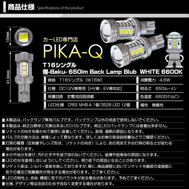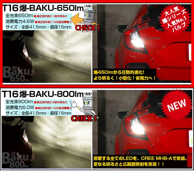 T16 爆-BAKU-650lm バックランプ用LEDバルブ
