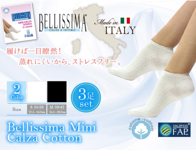 靴下 くつした ベリッシマ スニーカーソックス 3足セット イタリア企画 トルコ製 ショート ユニセックス レディース メンズ 蒸れにくい ウルトラソフトコットン 快適