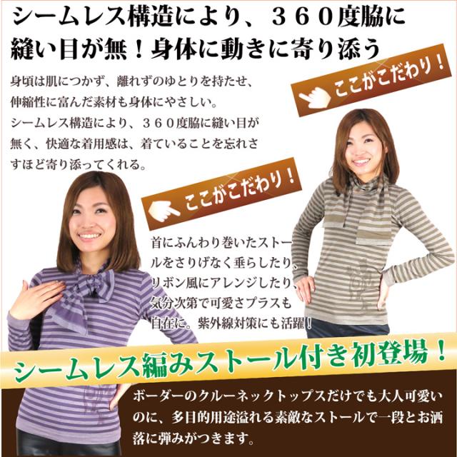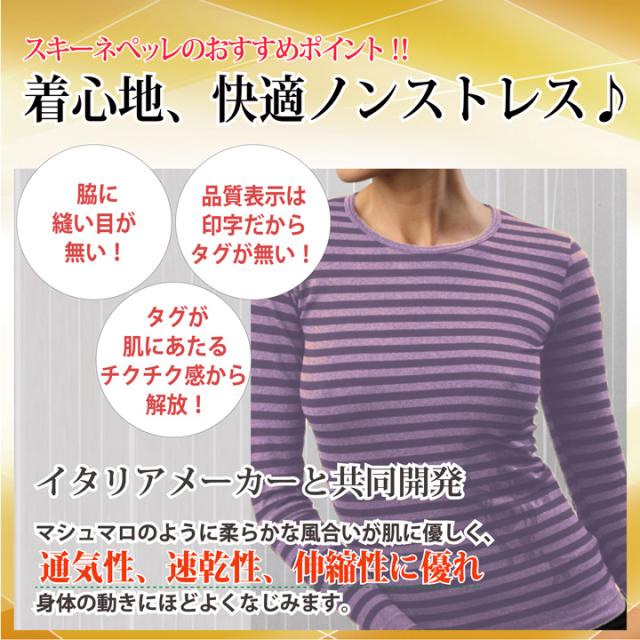 ボーダー 長袖 ストール付 スキーネペッレ イタリア製 ボーダー柄 インナー ストレスフリー