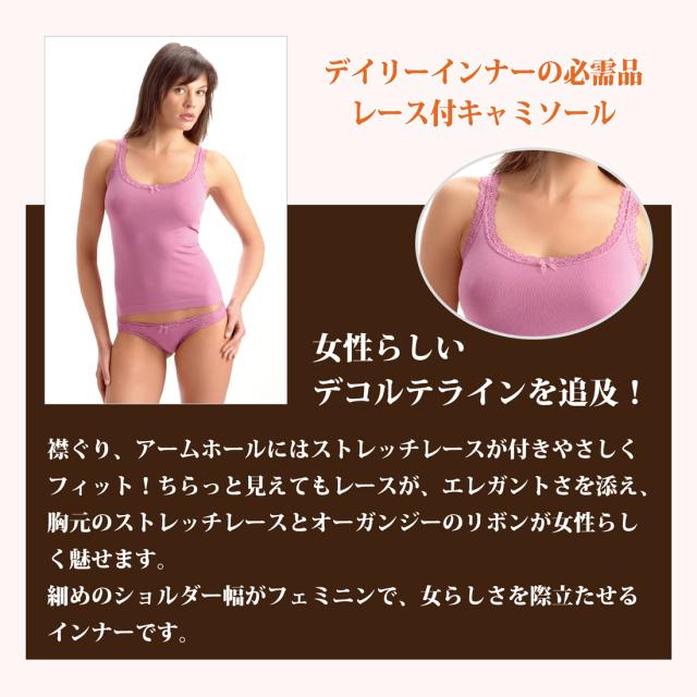 2枚組 キャミソール レース付 スキーネペッレ イタリア製 ストレスフリー シームレス インナー 快適 レディース