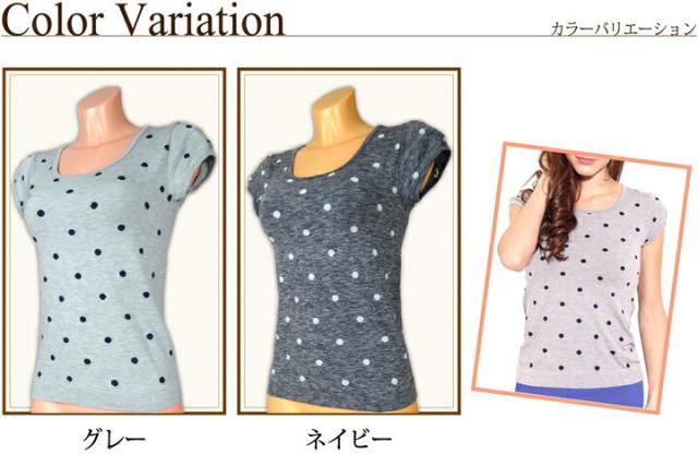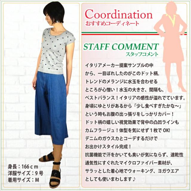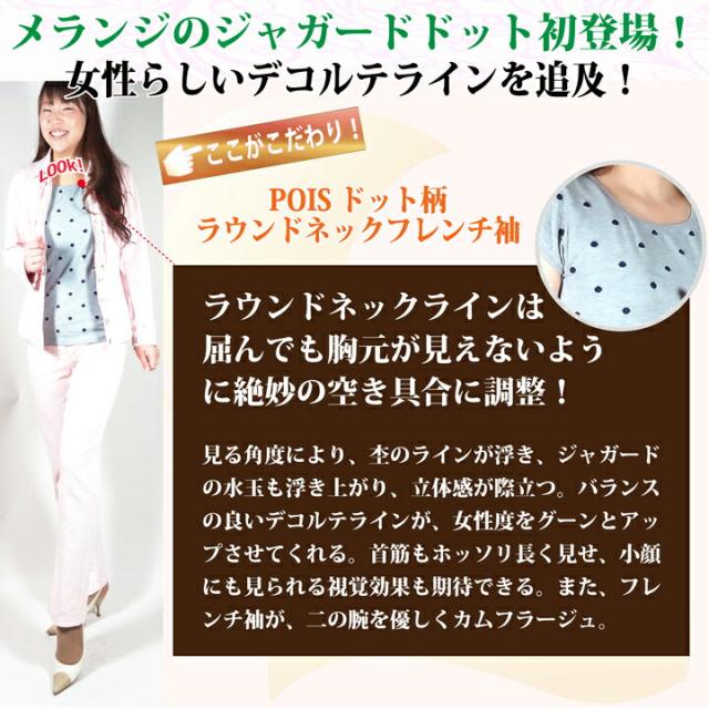 送料無料 半袖シャツ POIS ドット柄ラウンドネックフレンチ袖 イタリア製 ストレスフリー シー