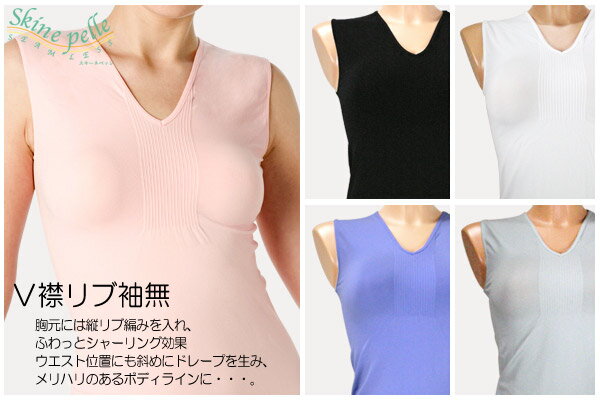 ノースリーブ V襟 リブ袖無 イタリア製 ストレスフリー シームレス 魅せインナー マイクロフ
