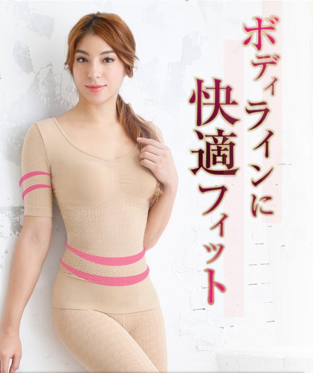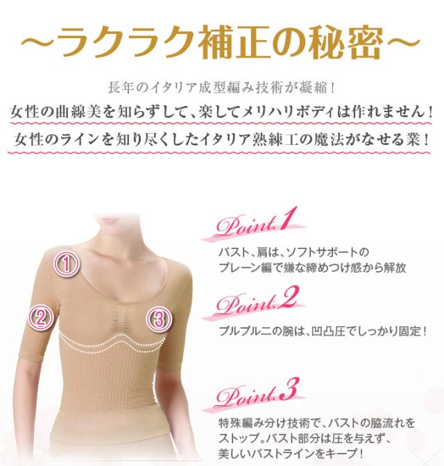 補正下着 インナー 半袖 レディース 加圧 着圧 引き締め ルックマジックアップ カノッタ シャーリング イタリア製 ボディメイク 補整インナー 抗菌 凹凸マジック 100デニール 吸湿速乾 伸縮素材 パープル限定