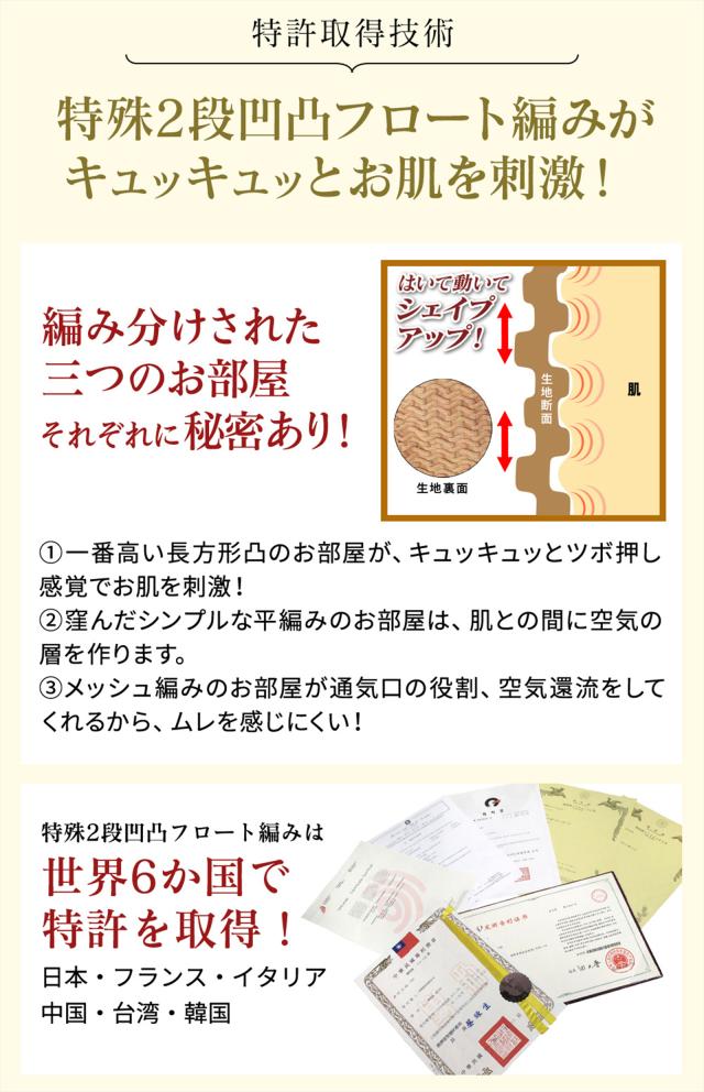 特許の特殊2段凹凸フロート編みがお肌をキュキュッとつまんでマッサージ♪