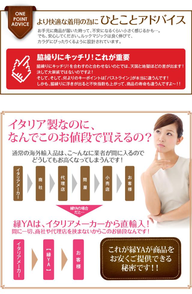 サイズ表中間サイズの方は、サポート力のお好みに応じて、強め希望なら、小さいサイズをおススメいたします。