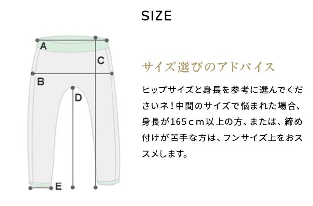 中間のサイズで悩まれた場合、身長が165cm以上の方、または、締め付けが苦手な方はワンサイズ上をオススメします。