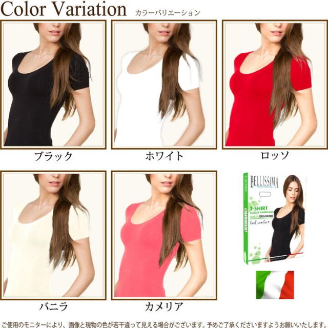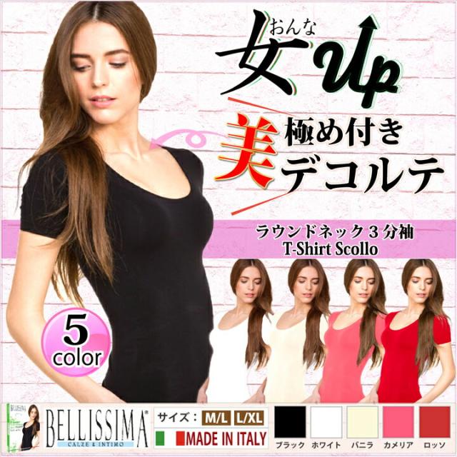 ベリッシマ BELLISSIMA ラウンドネック 3分袖 半袖 イタリア製 マイクロファイバー 優れた伸縮性