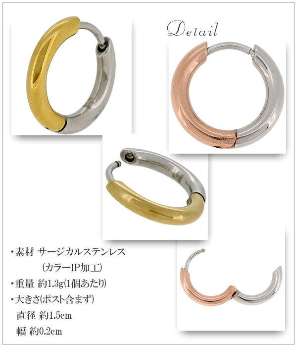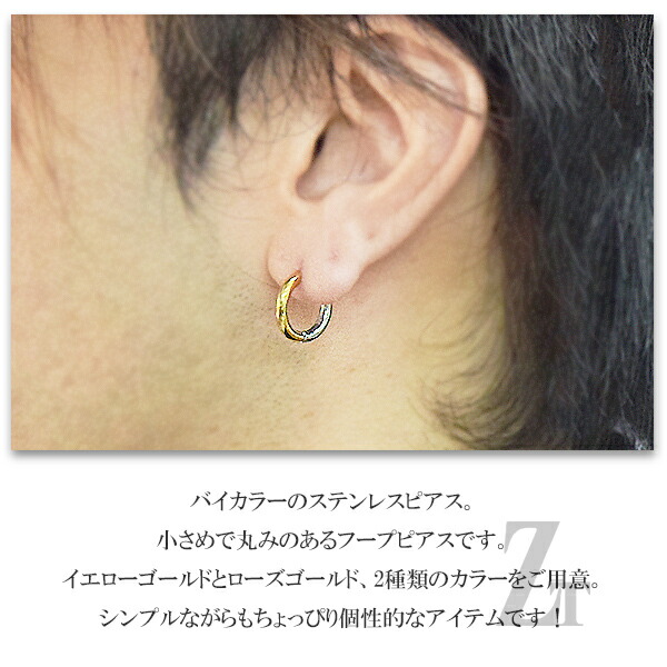 イエローゴールド ローズゴールド 2色 ツートンカラー ループピアス SS316L 金属アレルギー メンズピアス