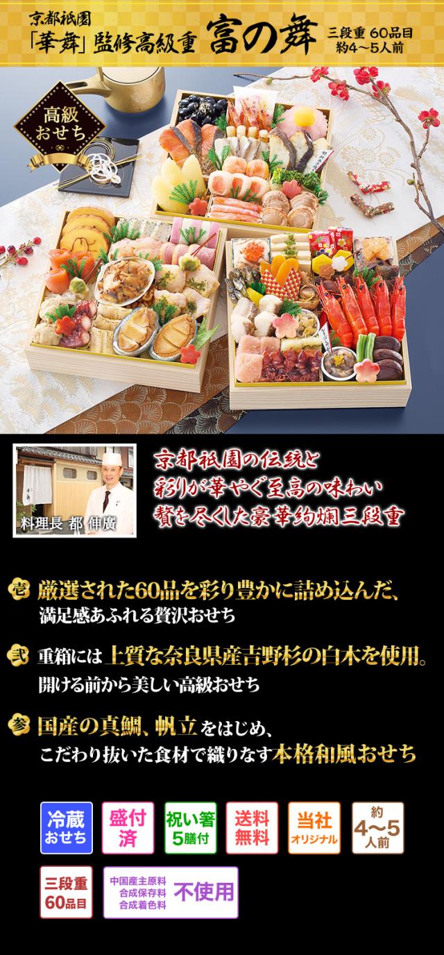 6.5寸三段和風おせち 【60品目・4〜5人前】 京都祇園「華舞」監修高級重 富の舞【送料無料】 冷蔵おせち 冷蔵 おせち お節 御節