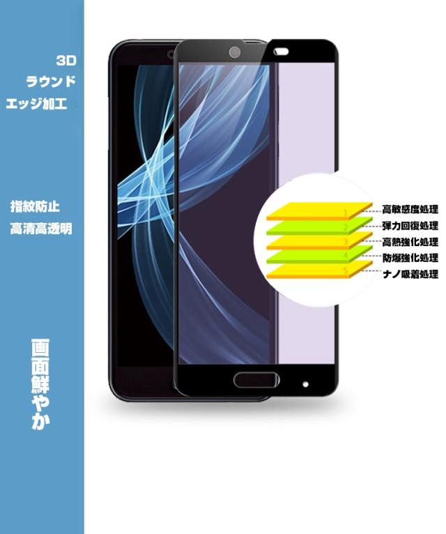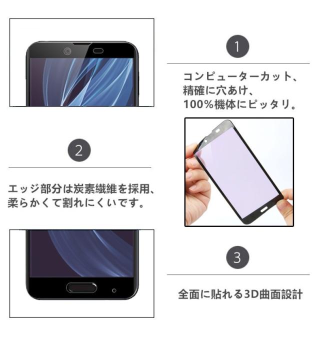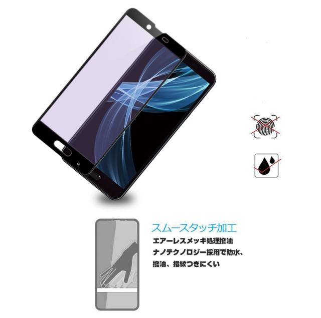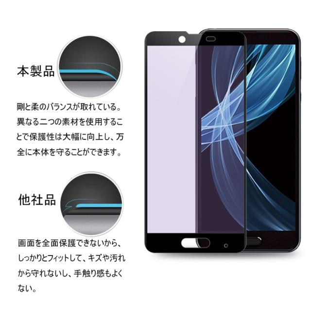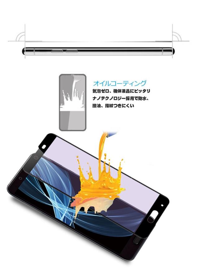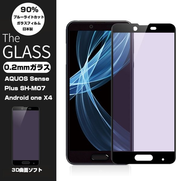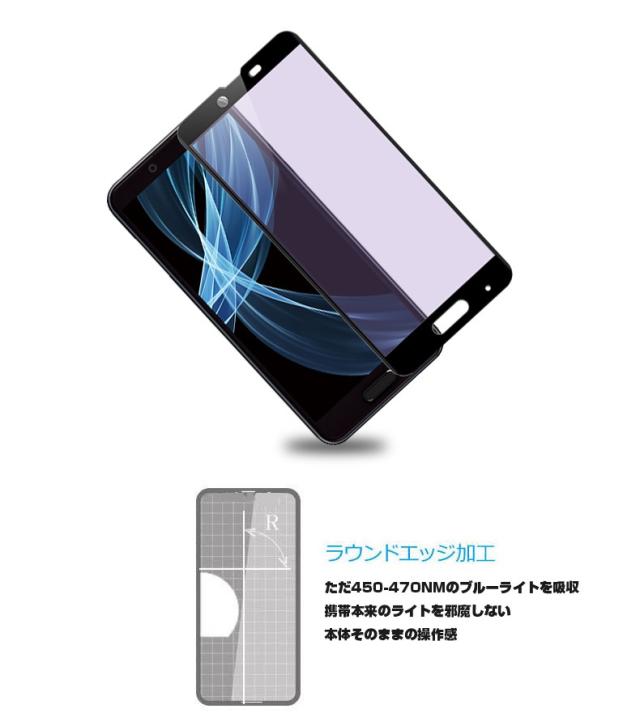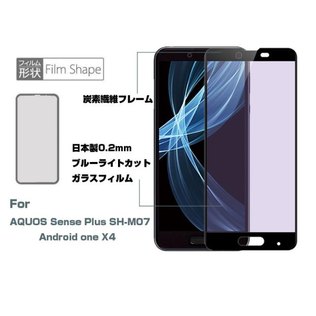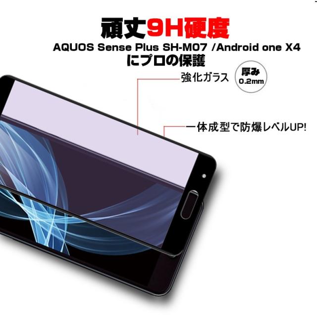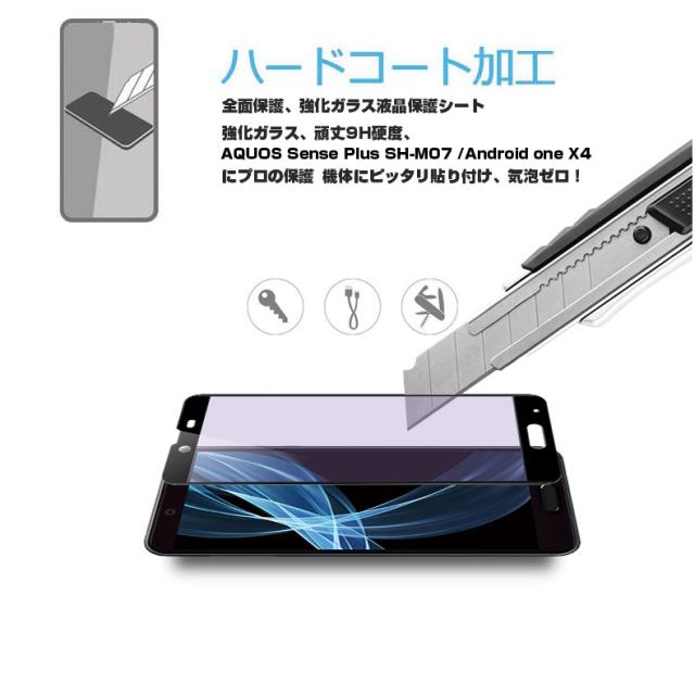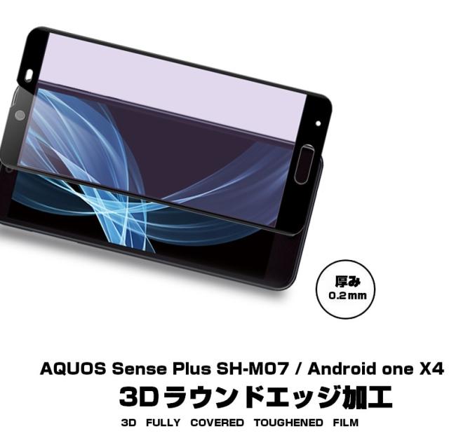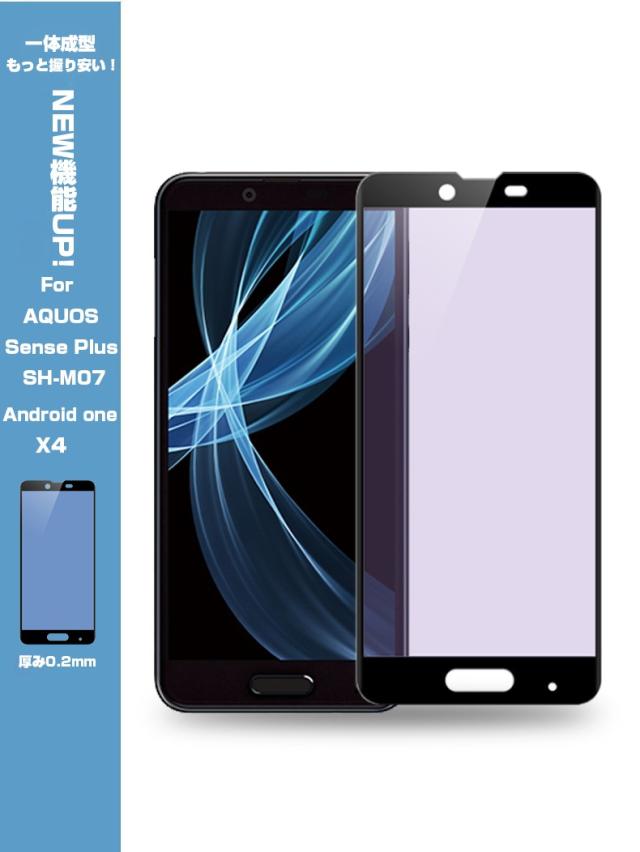 【2枚セット】Android One X4 ブルーライトカット3D全面保護ガラスフィルム AQUOS Sense Plus SH-M07 曲面強化ガラス保護フィルム