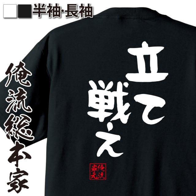 俺流 憩楽体Tシャツ【立て 戦え】名言 漢字 文字 メッセージtシャツおもしろ雑貨 お笑いTシャツ|おもしろtシャツ 文字tシャツ 面白いtシャツ 面白 大きいサイズ 送料無料 文字入り 長袖 半袖 日本 おもしろ プレゼント