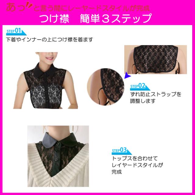 つけ襟 付け襟 丸襟 角襟 フリル レース ハイネック 黒 白 メール便送料無料 シンプル ベーシック ブラウス シャツ 重ね着 小物 無地