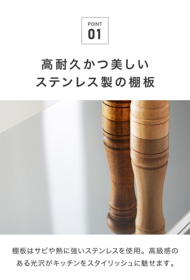 耐荷重20kgの耐久性とスタイリッシュなデザインを両立した、頑丈キッチンラックです。