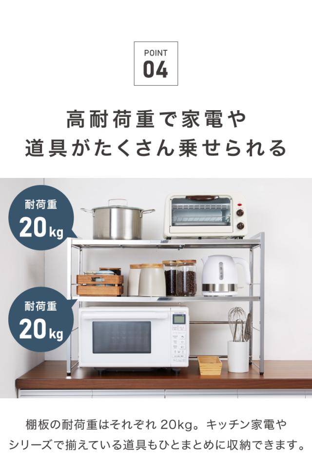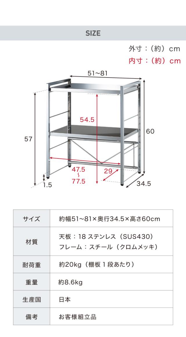 日本製 燕三条 頑丈ステンレス棚 伸縮 レンジ上ラック 2段 幅51〜81cm キッチンラック カウンター上 家電上ラック(代引不可)【送料無料】