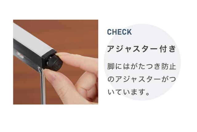 サイドフレームには、強度の高い角パイプを使用。ぐらつきにくく、安定感があります。