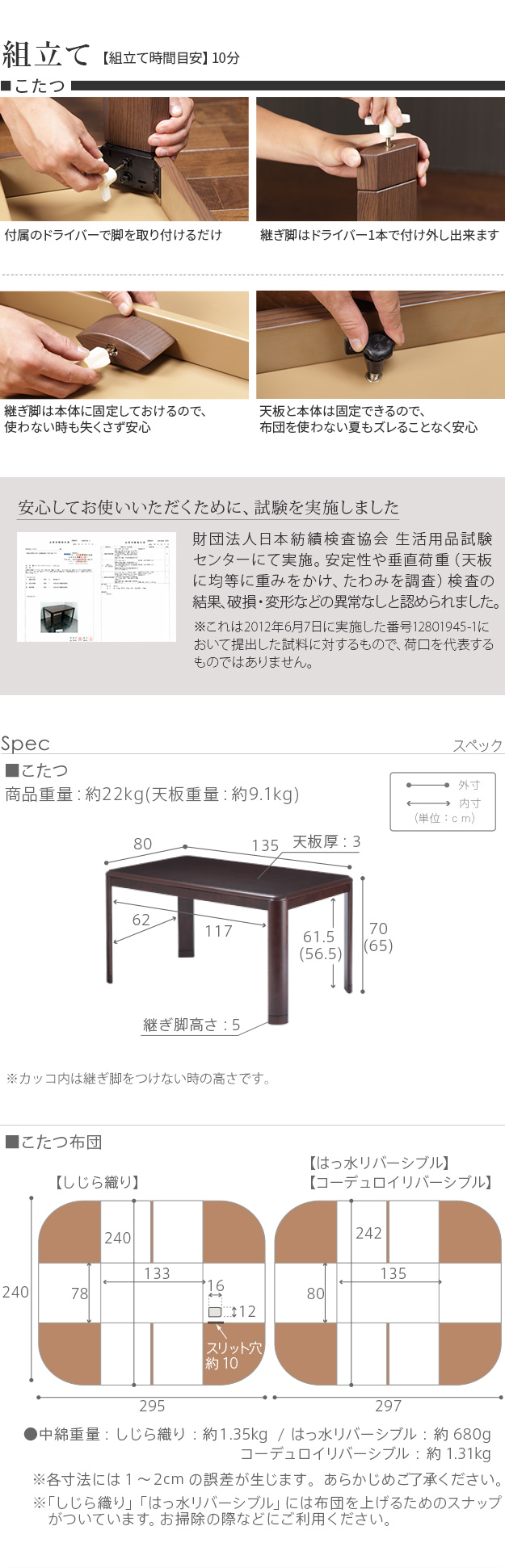 135x80cm 2点セット(こたつ本体+こたつ布団)