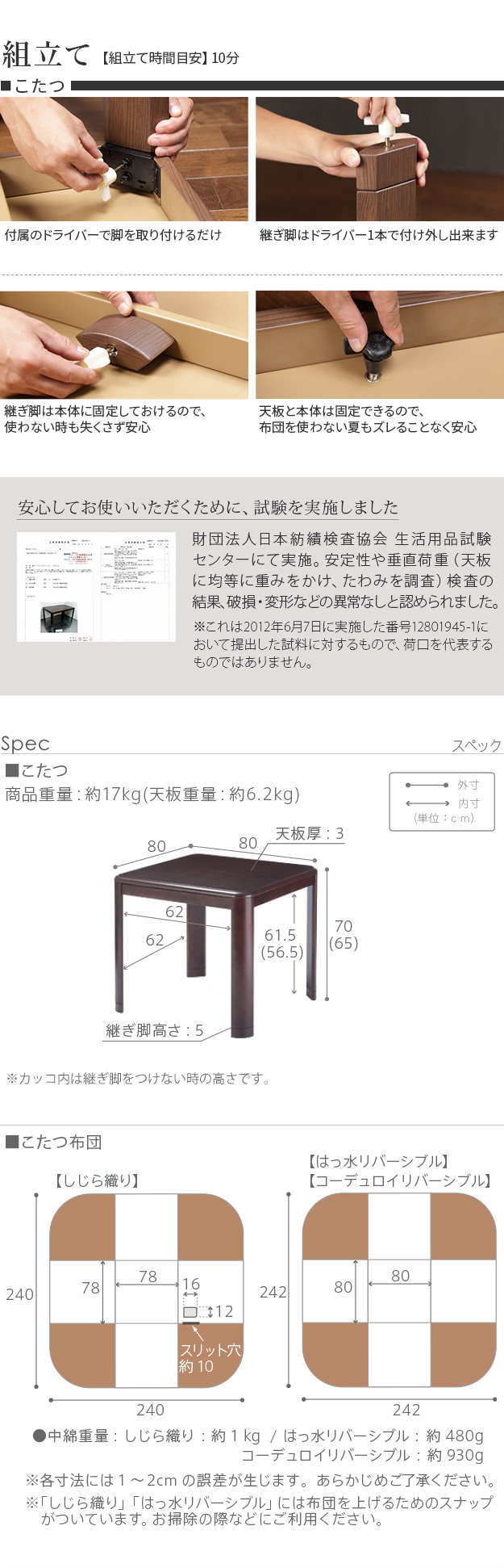 80x80cm 2点セット(こたつ本体+こたつ布団)