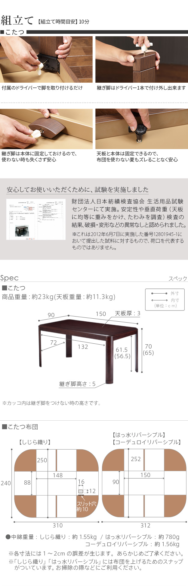 150x90cm 2点セット(こたつ本体+こたつ布団)