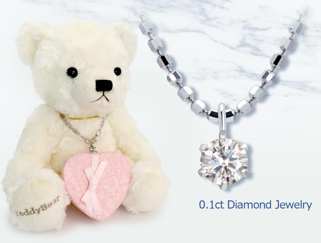 永遠の憧れ1粒天然ダイヤモンドを人気の6本爪でセッティングした、人気の定番天然ダイヤモンドネックレスを、大人気★ふわふわテディベアのぬいぐるみとセットにして、オンリーワンの特別感とともにお届けします。