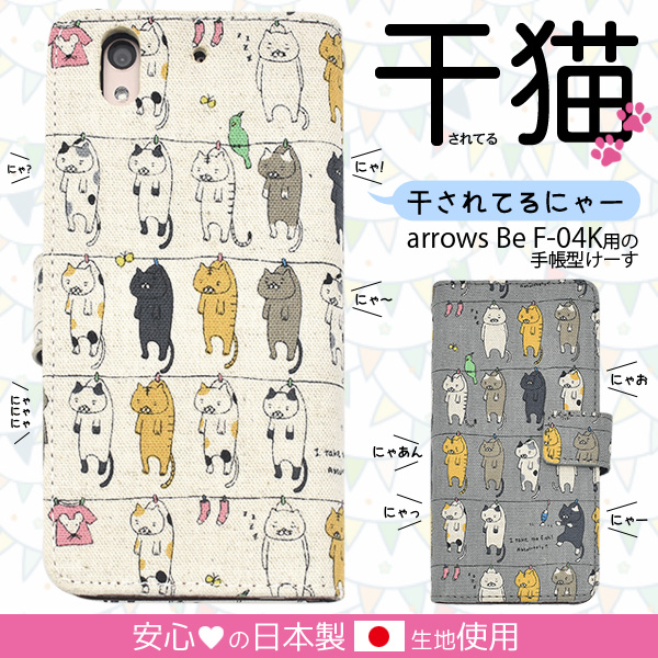 スマホケース arrows Be F-04K 手帳型 横開き 日本製生地使用 洗濯ネコケースドコモ アローズ ビー F-04K 保護カバー