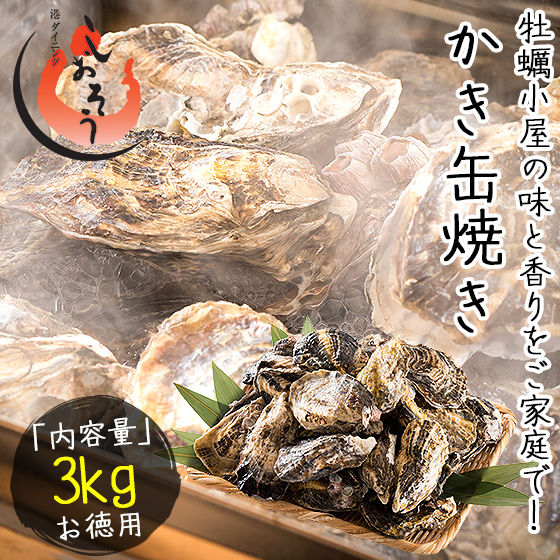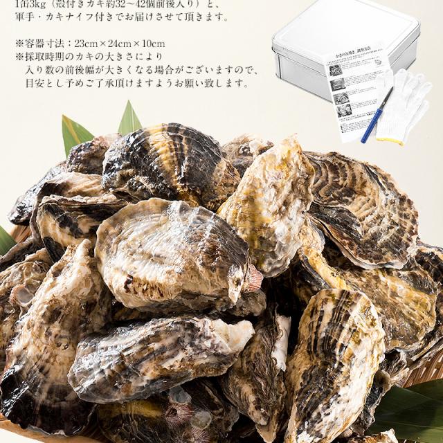 カキ 牡蠣 缶焼き かき 3kg(殻付き 約32〜42個)軍手 ナイフ付き BBQ 海鮮 バーベキュー お歳暮
