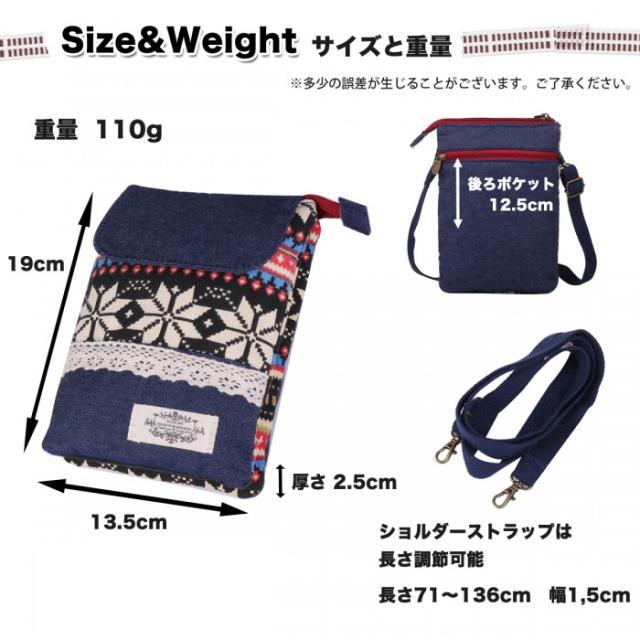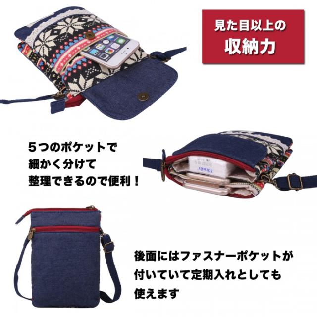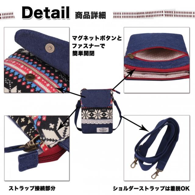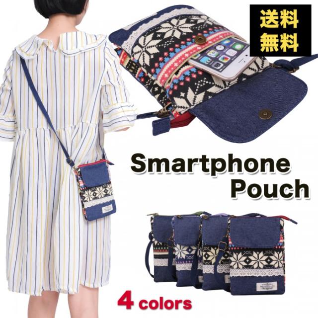 スマホポーチ デニム チロリアン民族風 縦M ポシェット ポーチ レディース かわいい 送料無料 yp