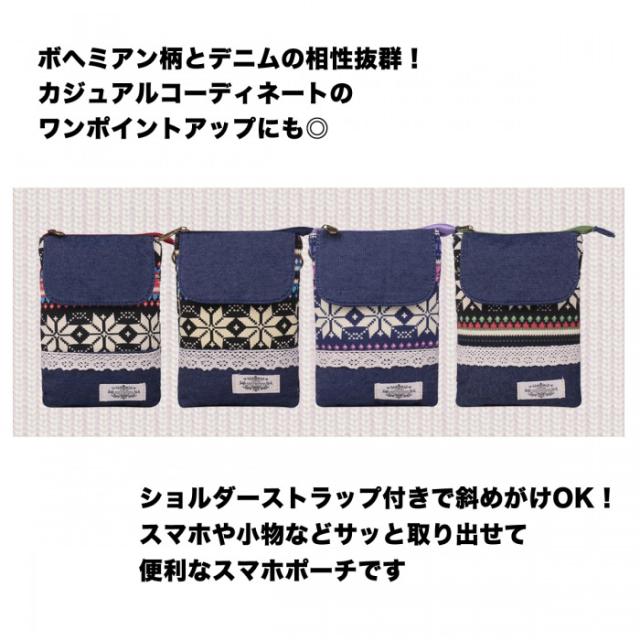 ボヘミアン柄とデニムの相性抜群なスマホポーチ