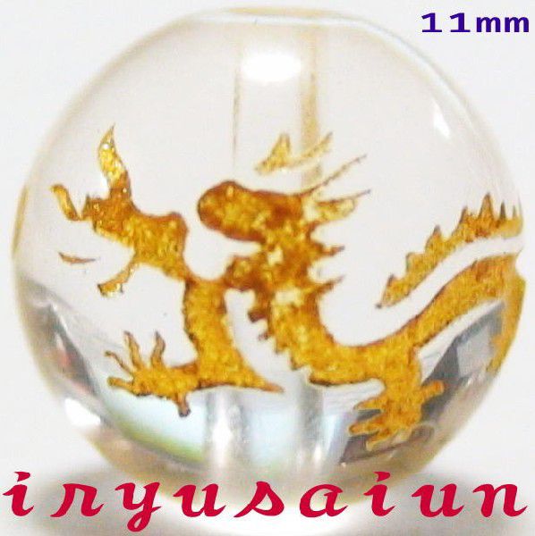 | 商 品 名 | 【水晶】天然石手彫り飛龍11mm金箔刻印珠パワーストーンブレスレット用 |