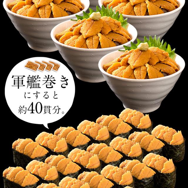 400g(100g×4パック)ウニ丼で約6杯、軍艦巻きで約40貫分相当