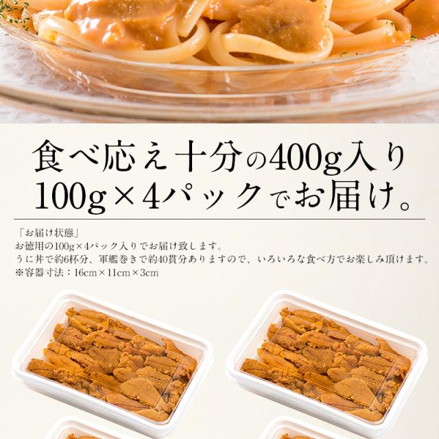 ウニ うに 400g(100g×4パック)無添加 贈り物 送料無料 無添加 ギフト プレゼント お歳暮